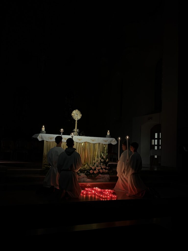 Zajedno smo se zatim uputili u crkvu, gdje smo imali klanjanje pred Presvetim oltarskim sakramentom. Naša glazbena sekcija animirala je klanjanje pjesmom, a kroz čitanje meditacija osjetili smo mir i prisutnost Boga među nama.